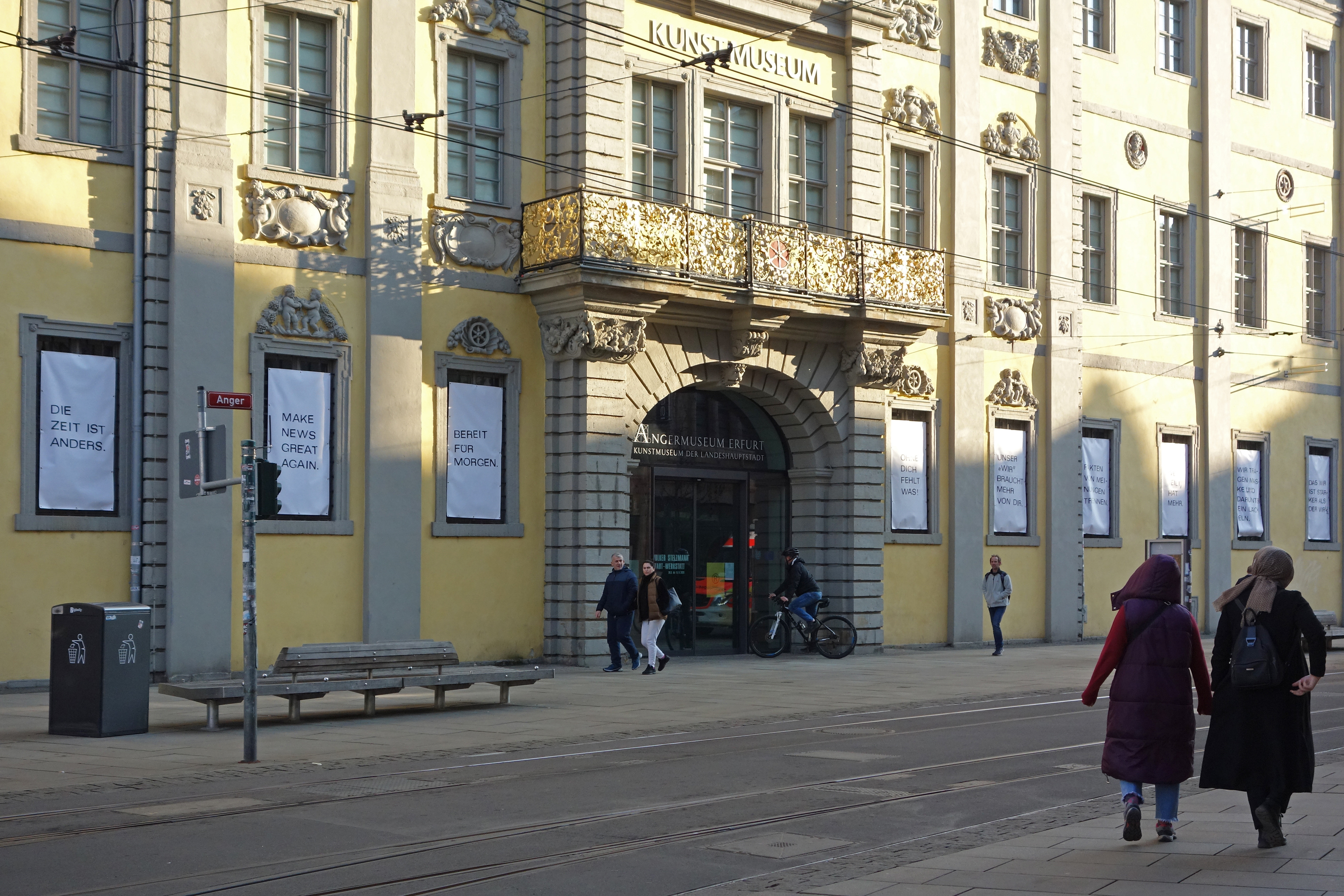 Die Werbesprüche, die ihr täglich ins Auge springen, notiert sich die Künstlerin Anke Stiller und überträgt sie danach fortlaufend in Künstlerbücher. Dabei werden die einzelnen Slogans jeweils für sich mit einem Kinderstempel-Set auf eine Buchseite per Hand gestempelt und täglich parallel ebenso auf Instagram publiziert. Am Angermuseum Erfurt waren vom 05.03. bis zum 05.06.2021 zwölf ausgewählte dieser Slogans aus dem Jahr 2020/2021 als Banner zu sehen.